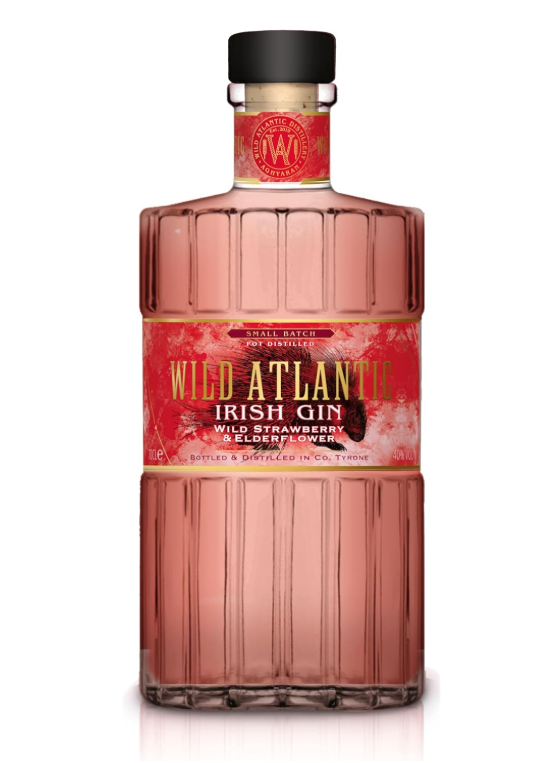 Wild Atlantic Irish Gin, Wild Strawberry and Elderflower. PREMIUM IRISH GIN: Small-batch distilled gin featuring wild strawberry and elderflower botanicals, crafted in County Tyrone